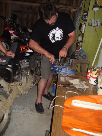 Rappel kürzt Kupplungshebel von Havocs Kati. „Jetzt kann man´s besser schluppen lassen“.