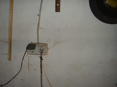 Innovative Mehrfachsteckdose in der Schrauber-Scheune vom Pensions-Wirt. Kabel links geht zur Abwechslung mal von Hinten in die Steckdose. Am rechten schwarzen Kabel hing die 1200Watt Schleifmaschine
