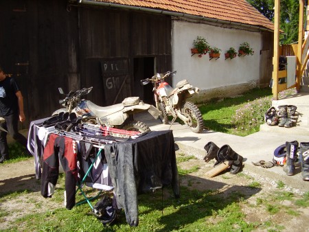 Sonniger Morgen. Reicht die Sonne zum Trocknen der Klamotten von Gestern? Sie hat nie gereicht!