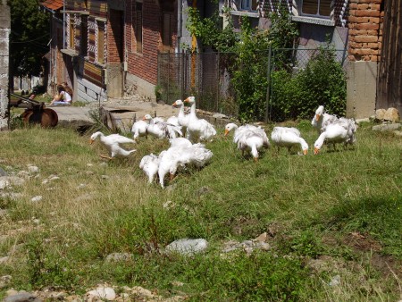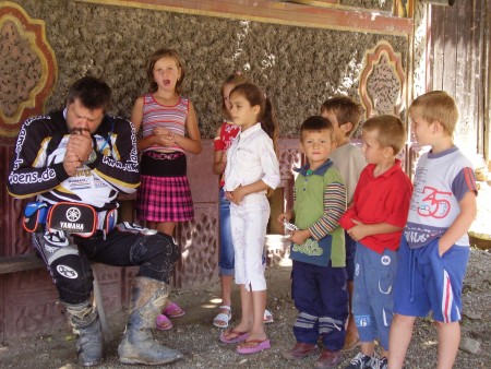 Auch die Dorfbevölkerung nutzt das gute Wetter zu Schwätzchen auf der Straße. Bei jedem Stopp in einem Dorf werden wir sogleich von neugierigen Kindern umringt. Besonders das Fernglas von Rappel sorgt für großes Hallo.